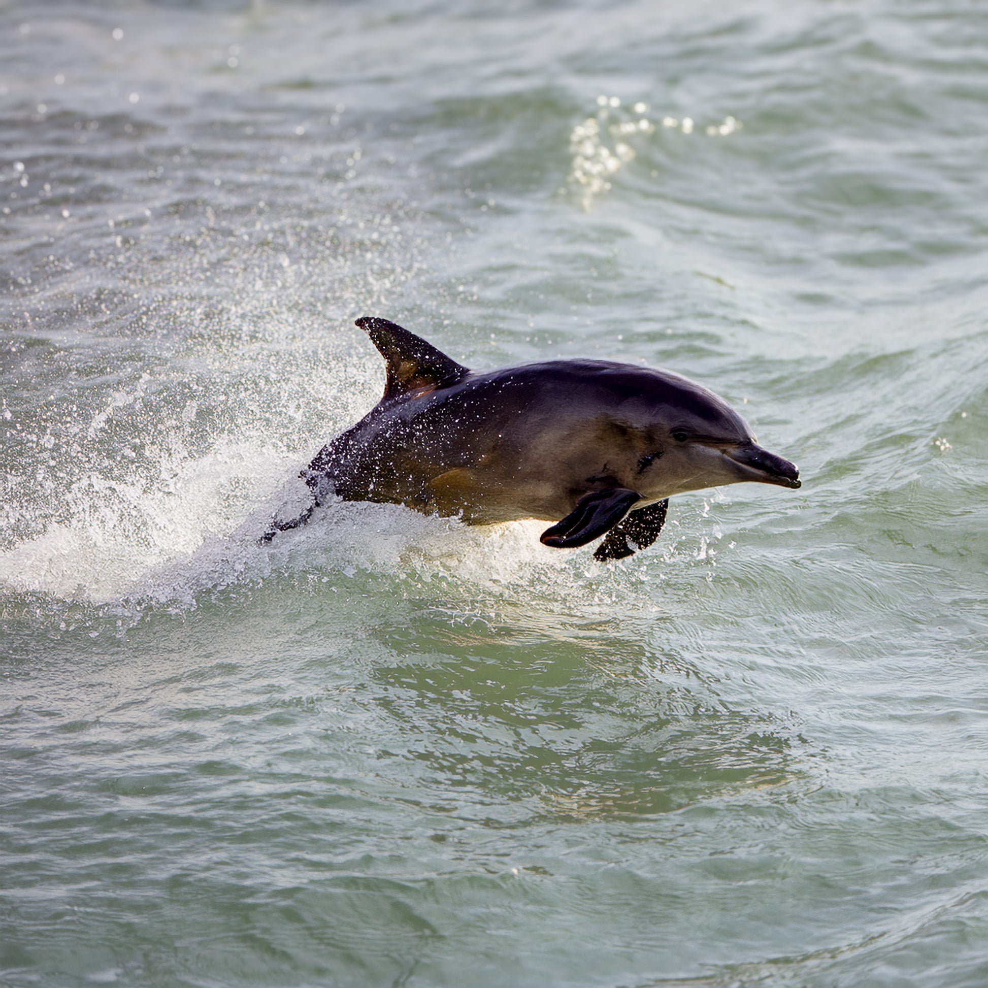 A joyful dolphin captured mid-leap along the North Yorkshire coast. This rare moment was taken on a late summer afternoon in Scarborough, showcasing the beauty and freedom of marine life. With glistening water and striking clarity, this image brings movement and serenity into any space.